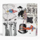 Examples of fashion through the twentieth century with a couple dropping back to the nineteenth, like a Corset ad and a bowler hat. Multiple color as well as black and white examples from the forties through the eighties show the contrast of short and long, wild and sedate over the year. Customizable text at front lower left.