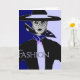 Stylized image of fashion model in big hat. Design is in black, dark blue, and a light purple with a touch of white and gray. The word "Fashion" is at the lower left corner