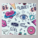 pattern, girl, fashion, graffiti, comic, illustration, sticker, cool, pop, diamond, seamless, texture, background, retro, kiss, patch, heart, 80s, element, 90s