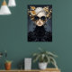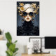 “Fashion” is an exquisite piece of art that embodies the essence of style and elegance. The artwork features a woman in a stunning black dress, adorned with gold accents that add a touch of sophistication. Set against a deep blue background adorned with gold flowers and leaves, the artwork exudes an air of mystery and allure. This piece is a testament to the timeless beauty of fashion and is sure to be a conversation starter in any space.