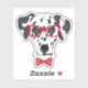 This design features a hand drawn portrait of Dalmatian dressed in red glasses and heart design bow tie.