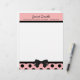 Pretty letterhead stationery, with graphics of a pink, with black polka dot footer, with a black border and black bow, in the middle. A black band, at the top, acts as a border for the pink header part of the page, with custom black text ready to personalize. Pretty retro yet stylish look.