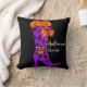For a gathering of Fashionista Witches. A decorative Halloween pillow to add to your Halloween decor year after year. A grinning Jack-o-Lantern, Autumn leaves and Batty Moon are waiting to go on to your couch for some Halloween fun! There is a witch's boot on the front and a pointy hat on the back. The colors purple, orange, yellow and black are just right for Halloween festivities.