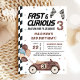 Fast And Curious Brown Race Car 3rd Birthday Party Invitation