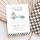 Fast, Curious & Four Racing 4th Birthday Invitation, Blue Race Car Party