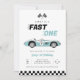 Fast One Blue Vintage Race Car Boy 1st Birthday Invitation