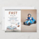 Fast One Racing Car Blue Boy 1st Photo Birthday Invitation