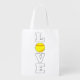 Fastpitch Softball LOVE Player, Coach or Fan Sport grocery bag: A fun reusable grocery bag for fastpitch softball players, coaches and fans, with LOVE printed vertically and a bright yellow softball graphic in place of the O. Perfect for bringing your stuff to the softball field, or just for regular grocery shopping.