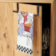 Fat French Chef Caricature Black White Checks Kitchen Towel
