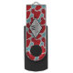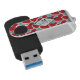 A usb drive with a repeating pattern of 2 different sized fat red hearts each heart surrounded by a white outer border. A diamond shaped frame layered over top with your text inside.