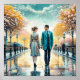 Pretty ai watercolor art. A man and woman passing each other in the London street brushing hands as they pass. A romantic chance meet.