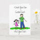 Father and daughter hold hands. The father's shirt read "daddy" and the little girls's shirt reads "me". The family has black hair with light skin. Customize this note card with your personalized greeting message to make a special custom greeting cards for Father's Day, new fathers, family reunions, or other special family holidays.