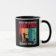 Father and Daughter Deer Hunting mug features a silhouette of a man and daughter with rifle and bow deer hunting and text that reads Father and Daughter Hunting Buddies For Life.