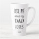 Father Latte Coffee Mug in Black White with Funny Ask me about my dad jokes funny quote mug | Funny Dad Father Quotes Latte Coffee Mug |