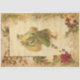 Beautiful holiday collage design featuring vintage Christmas ephemera, including green-robed Father Christmas with musical notes, brass bells, pine, roses and holly on grungy distressed gold parchment background with engraved pine and subtle snowflakes. Suitable for Christmas decoupage or crafting projects.