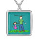 Father and daughter hold hands. The dad's shirt read "daddy" and the little girl's dress reads "me". The family has brunette hair. The image comes in multiple color versions. There is also a no color drawing version too. You can personalize the family necklace art drawing with your custom family names or other message for a special Father's Day gift, new Daddy, Family Reunion or other customized pendant jewelry gifts!