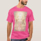 My 11 yo wore adult XL (5’7” 165#). The 8yo is small framed. She wore adult small and tied it in the back. Grandma wore adult large with long sleeve shirt underneath. Tall girl adult medium. Dark haired male adult large. Good quality dark Heather gray, Gildan brand shirt. -it was next up from basic choice and cost about $20 per shirt. Not too thick or thin. Washed and dried well, no major shrinkage. Not see-through. Can wear a bra under it fine. Screen print is just as shown and well done, front and back.