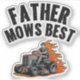 Father Mows Best Funny Dad Fire Flame Lawn Mowing Sticker