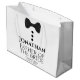 This gift bag is designed for the Father of the Bride. The design features black text and a black tie with buttons on a white background. Includes a space for his name as well as the name of the couple and the wedding date. Fill with gifts, favors, candy, booze, or any other sort of wedding swag. Great way to thank him for being a part of your wedding party.
