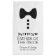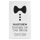 This gift bag is designed for the Father of the Bride. The design features black text and a black tie with buttons on a white background. Includes a space for his name as well as the name of the couple and the wedding date. Fill with gifts, favors, candy, booze, or any other sort of wedding swag. Great way to thank him for being a part of your wedding party.
