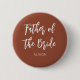 Father of The Bride Wedding Button in Burnt Orange, Brown and White/ Terracotta. Good for Weddings, Bridal Party, Bachelor party Rehearsal Dinner. Check out more products with this design in the collection below.
