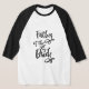 I bought the Men's Basic 3/4 Sleeve Raglan T-Shirt, White/Navy. It arrived on time for a gift and is of a great quality and fits perfectly! So cute! Zazzle has done it again! The printing was clear and filled in solidly.