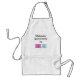 The apron is of very good quality. I used it while icing cookies. The dark colored icing washed off of the apron very well! The neck strap is sturdy and easy to resize on the adult size apron. The print was clear and well defined. I am glad I was able to personalize with name.