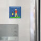 Father and son hold hands. The dad's shirt reads "daddy" and the little boy's reads "me". The family has black hair and light skin. The image comes in multiple ethnic versions. There is also a no color drawing version too. Add your customized family name to personalize the magnet. Add a custom message for a special father or daddy magnet! You can make a personalized fridge art magnets for a special Father's Day gift, new Daddy, Family Reunion or other customized family art gifts!