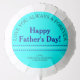 Father's Day is written in navy blue text. Aqua background. Celebrate dad. Geometric rows of navy blue and white polka dots. Personalize family names at bottom, or other text, or delete text box. Love You Always and Forever is written in half circle. Backside has Father's Day in white text with circle of navy blue polka dots. Design by TamiraZDesigns.