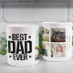 Celebrate the special father in your life with this image collage with Dad text coffee mug. This custom mug has space for six of your favorite family photos. There is also the text Best Dad Ever in black and space for your own custom text, such as I Love You Daddy and your children's names. This beautiful coffee mug will be a treasured keepsake for Dad for years to come.