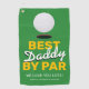 Discover the perfect gift for the golf-loving dad this Father's Day, a modern personalized golf towel. It features a stunning green grass background, a nod towards his favorite hobby. With a golf ball detail, the adorable phrase 'Best daddy by par, we love you lots!' and a personal touch of your children's names, this golf towel is the ultimate blend of practicality and sentiment.