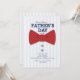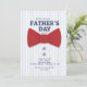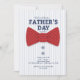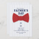 A handsome invitation to celebrate Father's Day with. The card features a striped shirt with a checkered-red bow tie and two buttons.