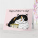 A cute Calico cat sitting beside their food bowl wishing their Cat Dad a happy Father's Day.