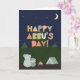 Father's Day's Day Card for Abbu. You call your father Abbu, not Dad. (Abbu means father in Urdu.) So get your Abbu a Father's Day card made especially for him! This cute outdoorsy card is perfect for any Abbu who loves camping, nature, the outdoors, and looking up at the stars in the night sky with his kids. The Father's Day card features a father bear and a child bear sitting outdoors by a campfire and tent in the wilderness looking up at the stars in the sky and the mountains. The cute Scandinavian-style text reads: Happy Abbu's Day!