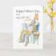 A Father's Day card 'from all of us', with a man relaxing with his newspaper with a cat on his lap and a dog at his side, from a watercolour illustration by Judy Adamson. Please feel free to change or delete the inside text and if you need changes to the front text, please contact me through my store.
