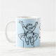 "Dad, Happy Father's Day!" reads the text on this mug featuring a cartoon style drawing of a father carrying his child on his shoulders with a white sunburst over a blue colored sky in the background. Blue background color may be customized. Perfect gift for a special dad on Father's Day! Designed by world renowned artist ©Tim Coffey.