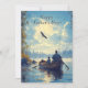 Pretty watercolor image of a Father and son going out for a day of fishing in a rowboat. They are on a beautiful lake , clear blue sky and Eagle flying overhead.