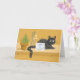 This general Father’s Day card shows a funny black and gray striped cat looking at a standing greeting card with paw prints and Happy Father’s Day written on it. The cat is laying by the edge of a table or desk with plants and wildflowers in vases nearby. Bring a smile to his face with this humorous Father’s Day card.