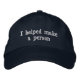 The design was easy to do with a number of options both the hat style, color and so forth. These aren't some printed letters, these are the real deal stitching. The two hats arrived quickly. I've used Zazzle in the past for shirts a number of times and this is the first time for a hat. Zazzle is absolutes the best in every respect; customer service, product selection and results. The embroidery was just right. My artwork was turned into a professional look thanks to Zazzle.