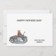 A father bear and a baby bear ready for adventure on their motorcycle with a sidecar! The sidecar text reads "Adventure awaits". This makes a simple and sweet Father's Day note card for all the adventurous dads out there! Customize with your own personal messages on the front and back of the card for the perfect sentiment sure to be a meaningful keepsake for your bike loving father!