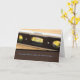 Father's Day for Son in Law greeting card features a photo of leveling tool, level on a hardwood pine floor. Blue letters with dropshadow on brown background for front verse. Inside sentiment reads "You're a great dad!!" Happy Father's Day.