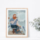 Modern funny Father's day Bloke sailor hipster in boat with dog for a tough father who loves the water and sea. Original artwork by Caroline Bonne Müller