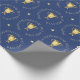 This striking wrapping paper has golden-colored customizable text, surrounding a shiny golden 'No. 1' trophy. The background is deep blue, and there are added decorative stars. The default greeting, ready for you to personalize, is "HAPPY FATHER'S DAY BEST DAD EVER".