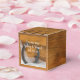 Customize the charming Faux Barn Wood Horseshoe and Veil Wedding Favor Box with the personal names of the bride and groom and marriage ceremony date. These shabby chic custom equine theme favor boxes feature a photograph of brown wood grain, rusty horseshoe and white bridal veil. Perfect for a casual yet classy rural country farm, rustic barn, ranch, equestrian, horse or western party, shower or wedding theme.