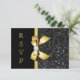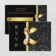 Elegant custom black and gold personalized rsvp cards with a beautiful glittery black printed image sequins jewels, gems pattern, cute shiny gold printed bows and ribbons images and pretty digital diamonds bling jewels on a classy black background. PLEASE NOTE: These are flat printed graphics - no raised parts. These classy, glamorous, glitz and glamour flat response cards are decorated / printed on both sides. Beautiful, chic, trendy, modern rsvps for any event:- weddings, baby showers, bridal showers, graduation party, womens birthday party, sweet 16 parties, quinceanera celebrations etc. Text, font and color of font can all be customized. If you need assistance customizing your product please contact me through my store. I will be happy to help. I have matching products in my store.