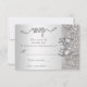 Personalized formal custom RSVP flat note cards for any event - weddings, baby showers, birthday party, sweet 16, Quinceanera celebrations, engagements, bridal shower etc. Elegant custom silver double sided rsvps with a beautiful sparkly printed glitter, rhinestones, sequins pattern, cute shiny printed vector bows and ribbons and pretty, stylish printed image diamonds bling jewels and fixed romantic rsvp text with curls and hearts swashes. These classy glamorous, fashionable silver cards are decorated on both sides. Beautiful, chic, trendy, modern double sided cards with glitz and glamour. Please note: All invites on Zazzle have flat printed images. I have matching products in my store. Text, font and colors of font are all personalizable / personalisable to meet your needs. If you need assistance customizing your product please contact me through my store. I will be happy to help.PLEASE NOTE:- All invitations on Zazzle have flat printed images - not real bows, diamonds or sequins.