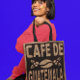 ALL OVER PRINT FAUX BURLAP COFFEE BAG TOTE. DESIGN IS ON BOTH SIDES. FUN GIFT FOR ANY COFFEE LOVER!
