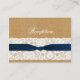 burlap lace, navy blue ribbon knot rustic wedding wedding reception cards. Matching products also available.