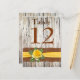 If you are having a rustic country wedding, and if beautiful yellow roses will be your primary flowers, then why not carry the look right over onto your wedding invitations and other assorted stationery? This truly gorgeous shabby chic, rustic wood grain, old barn wood look wedding table number post card has a PRINTED burlap strip with a PRINTED yellow satin ribbon on it that matches the wedding invitation shown below. There is a yellow rose with green leaves atop the ribbon. Perfect for your casual or informal rustic country spring, summer, fall, or winter wedding reception. ****You MUST change the number 12 to each number that you need, add it to your cart, then return and repeat the process for all the numbers you need.****PLEASE NOTE that everything will print as it appears on your monitor, so if you have typos, alignment, or sizing issues, please contact me for help BEFORE you order. I can't help with anything once the order has been placed with Zazzle. If you would like a different flower or color combination, or if you need any other matching items, please email niteowlstudio@gmail.com.