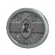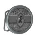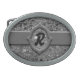 This oval belt buckle is sporting a faux chrome mini box artwork with banner and frame for your initial. Fill in the template field with your information, remove all text and text banner or click Customize it! to select a font style, size and color you like. Under Style Options you'll see that this design is also available in rectangular shape.